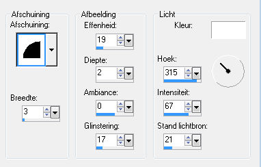 Effecten/3d effecten/afschuining binnen met de volgende instelling.